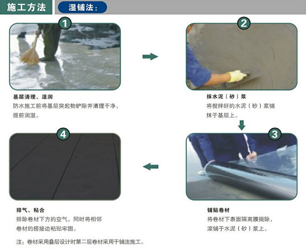 防水卷材與結(jié)構(gòu)牢固粘結(jié)。卷材出現(xiàn)局部破壞,水都會(huì)被限定在很小的范圍內(nèi),不竄流。即使出現(xiàn)個(gè)別的滲漏,則滲漏點(diǎn)也會(huì)與破壞點(diǎn)一致,易檢修。
